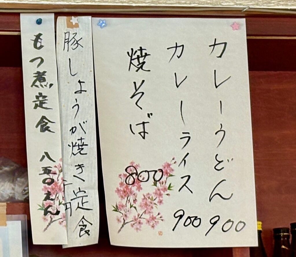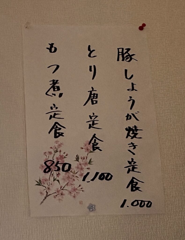 メニューは壁に貼られており、定食などもあります。