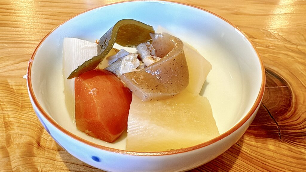 居酒屋のお通しのように大根の煮物を出してくださいました。