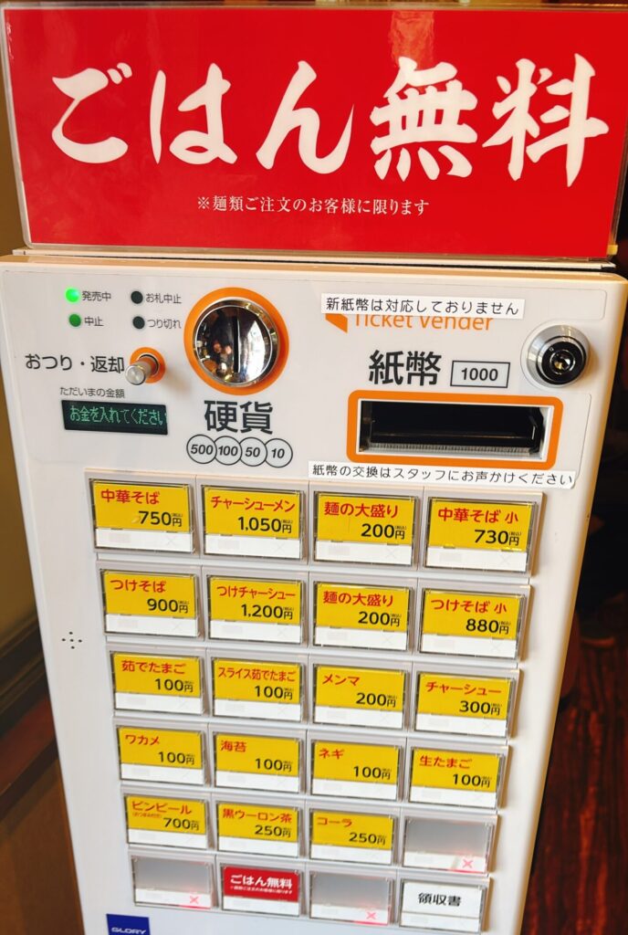 ごはんは食券機の下の方にボタンがありますが、食券提出時に伝えるのもOK。