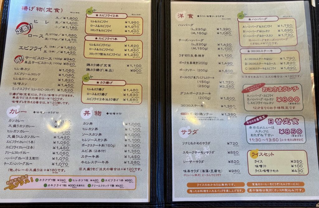 メニューは、とんかつだけでなくカレー、ハンバーグ、唐揚げなど種類豊富。