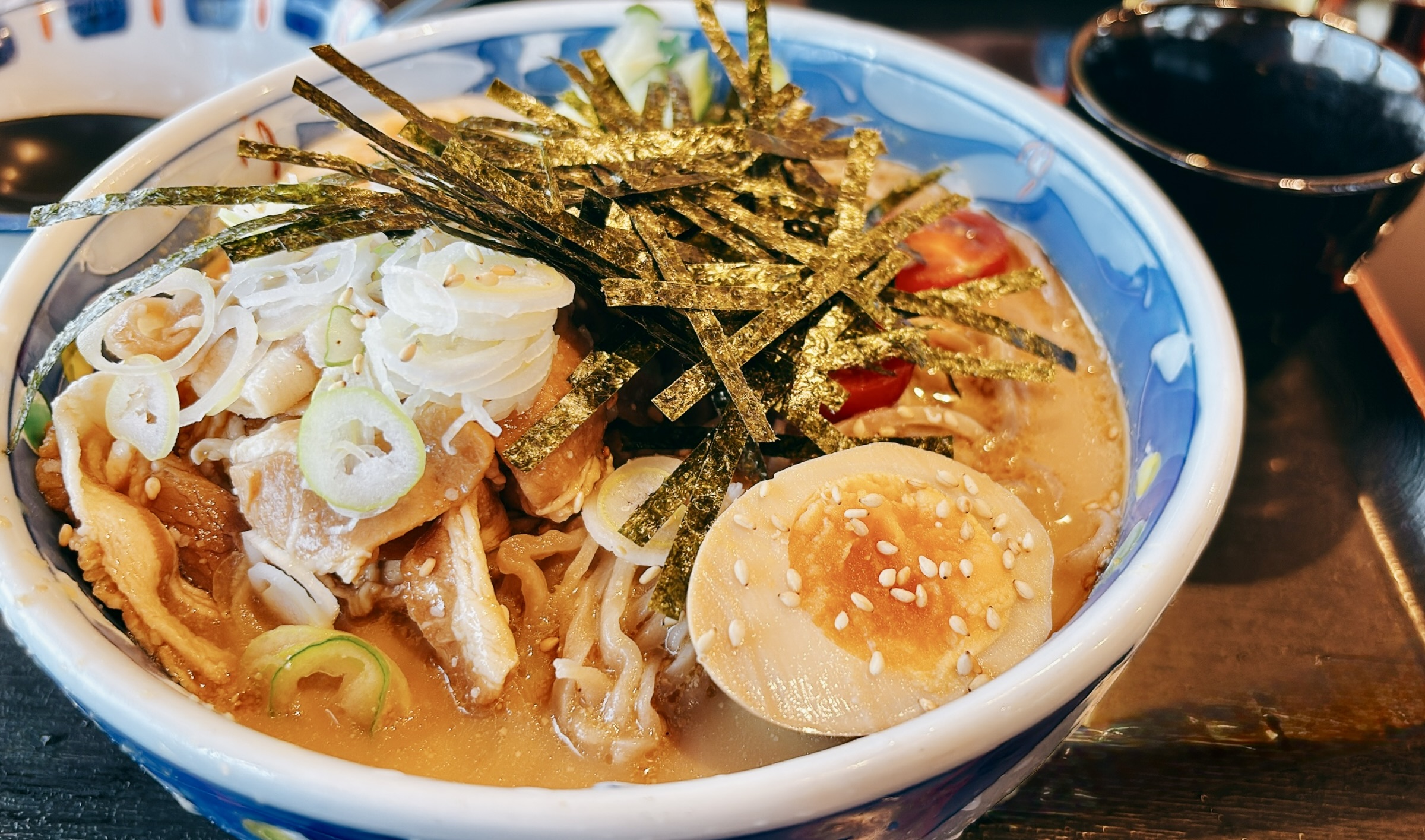 - 具材:甘辛お肉、煮卵まるごと1個、胡瓜、トマト入りで満足感あり