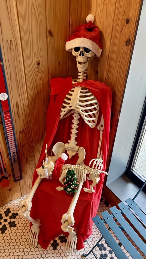 入口では骸骨サンタが出迎えてくれて、ちょっとクスッとしてしまいました。