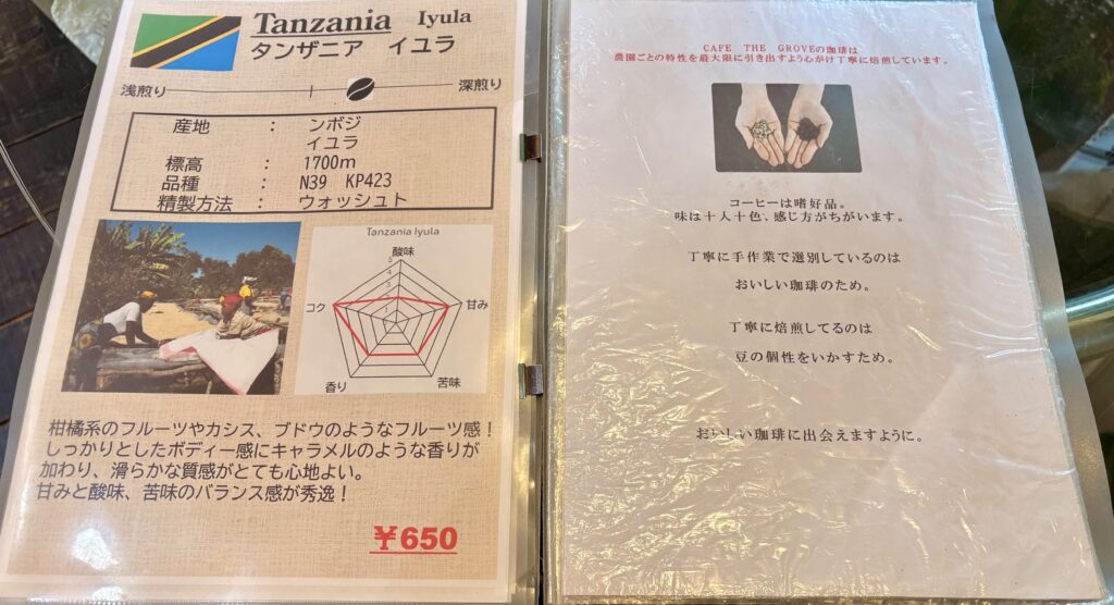 メニューを確認。(この日はうっかりランチメニューの写真を撮り忘れてしまいました……)