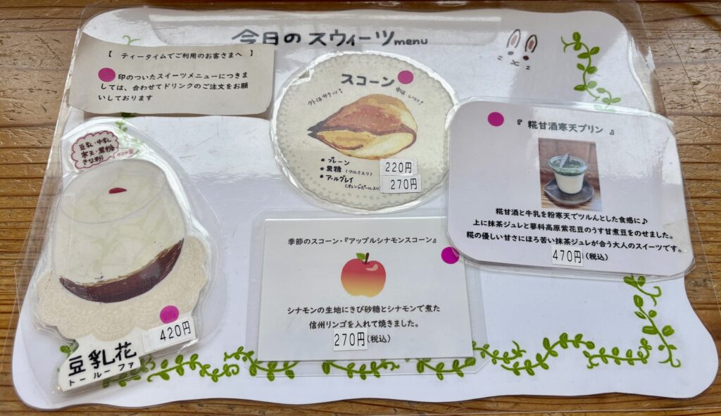 今日のスウィーツも美味しそうでした。次回はカフェタイムに立ち寄りたい。