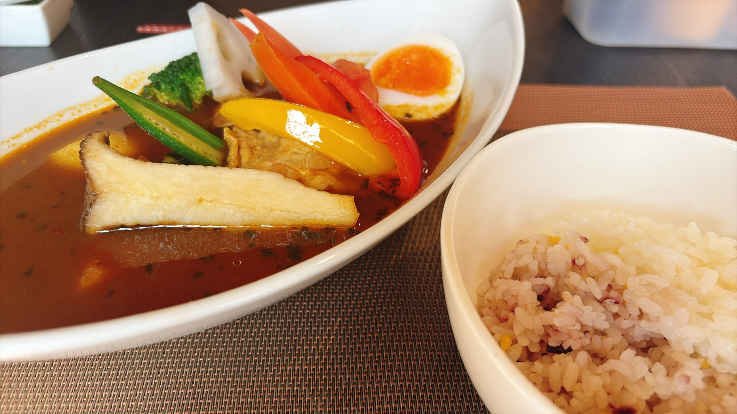 いよいよメインのスープカレー。ご飯は白米・雑穀米・ハーフ&ハーフから選べます。