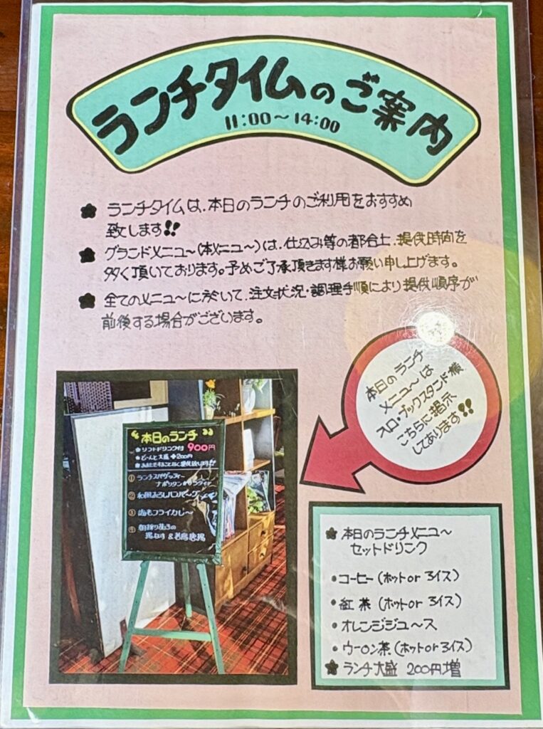 通常メニューも注文できますが、ランチメニューの方が提供が早いそうです。