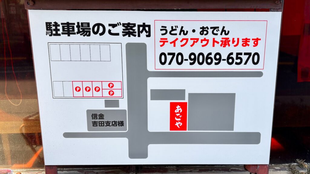 ※駐車場は店舗近く、信金吉田支店横に5台分あります。