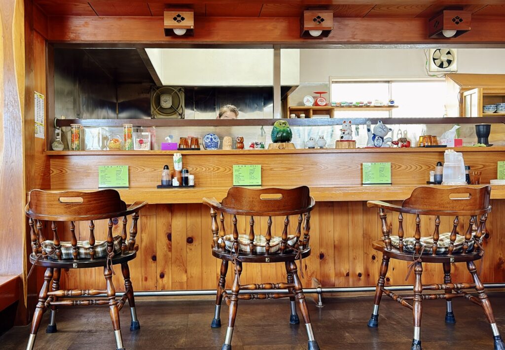 カウンターの木製椅子は年を重ねてなお美しく、まるで「常連客と共に時を刻んできた証」のよう。