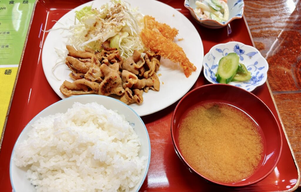 お味噌汁は優しく、心まで温まる味。「これぞ地元の食堂」と言いたくなる一品でした。