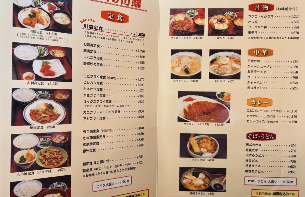 定食、丼もの、ラーメン、カレー、そば、うどん。
