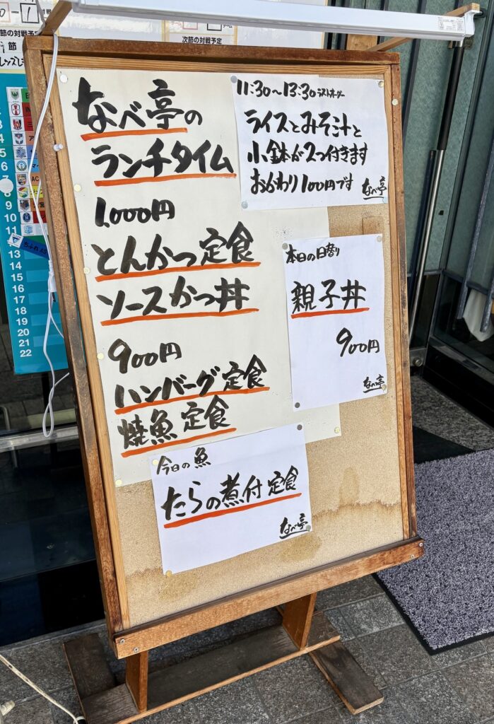 店前には本日のランチ看板。すべて1,000円以内。とんかつ、ハンバーグも1,000円。