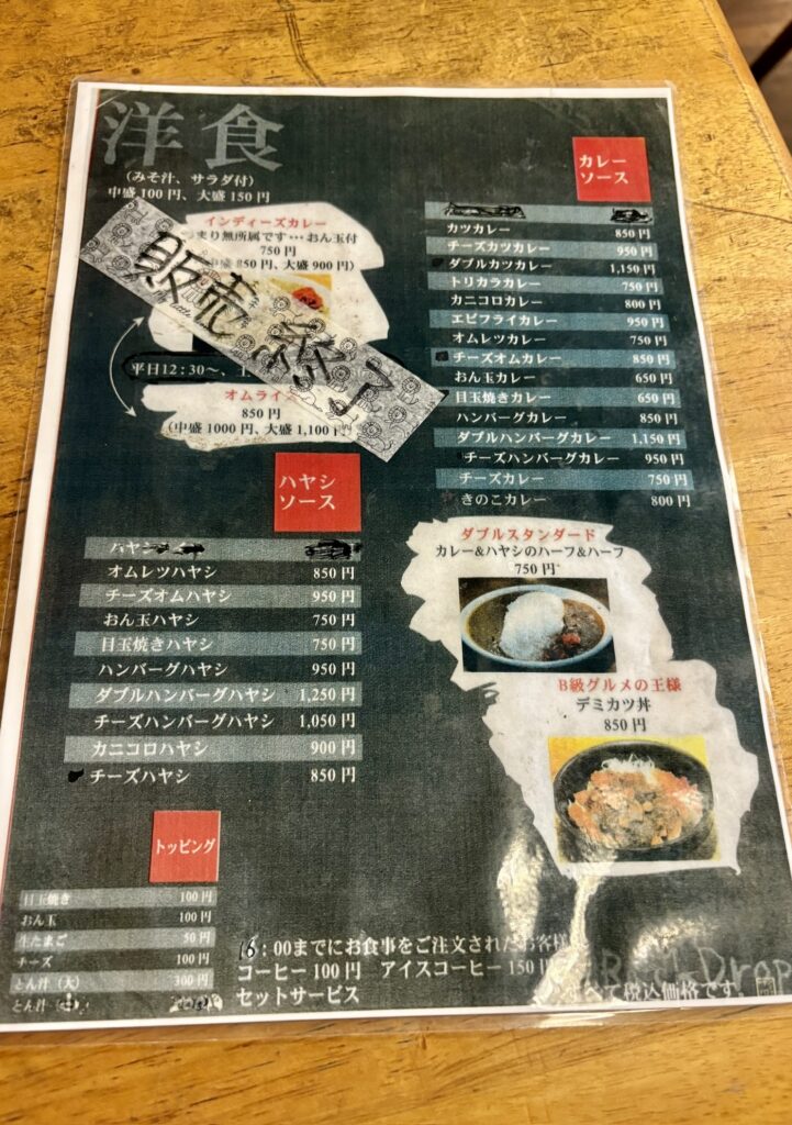 この日は、人気のオムライスを目当てに来店しましたが残念ながら販売終了。