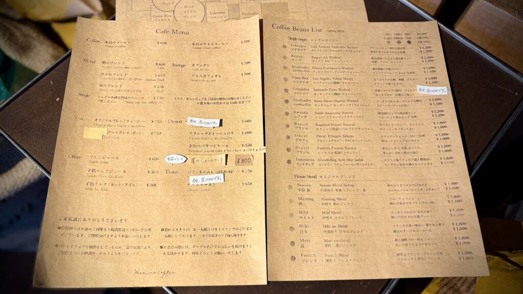 メニューを開いた瞬間、豆へのこだわりが伝わってきて思わずニヤリ。