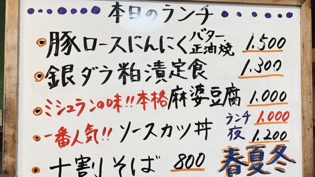 手書きのホワイトボードは、仕入れによる日替わり感が伝わってきて好印象。
