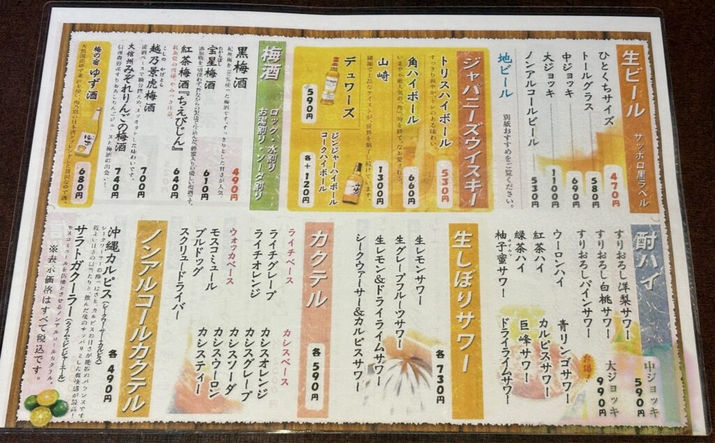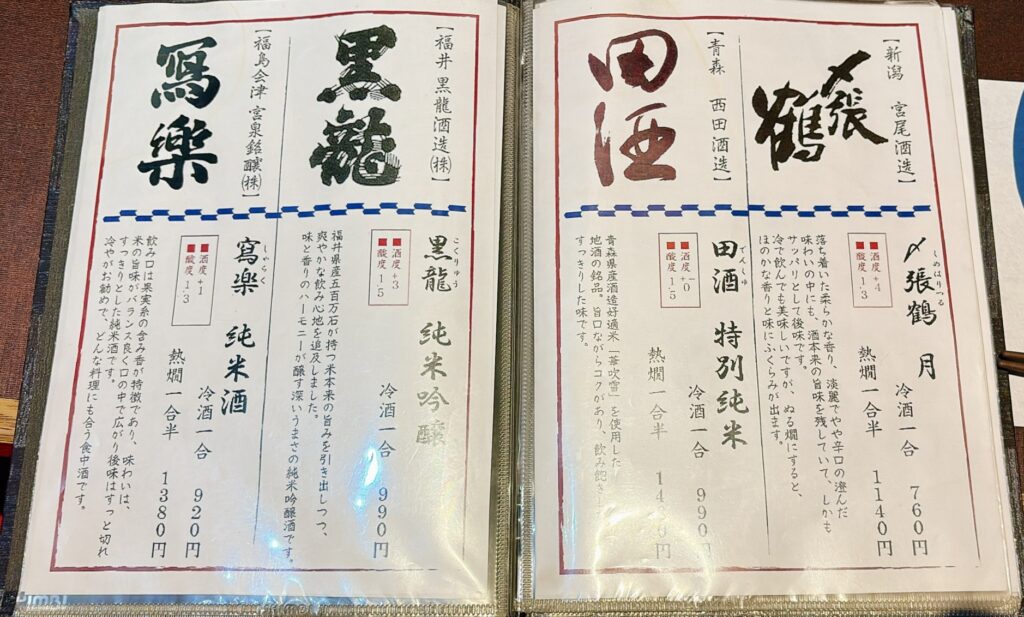 観光で訪れた方にもおすすめできる内容です。日本酒も、地酒から県外銘柄まで幅広くラインナップ。