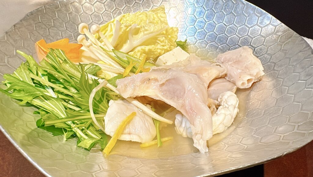 この日のお通しは、なんとフグを使ったお鍋でした。