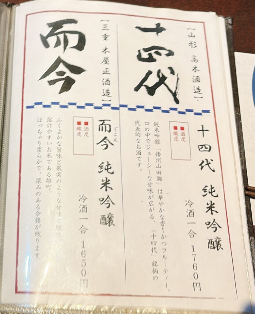 さらに驚いたのが、入手困難な山形の銘酒「十四代」が置いてあったこと。
