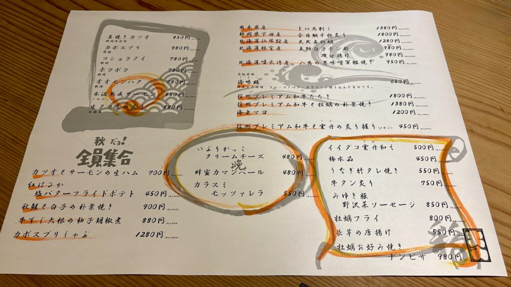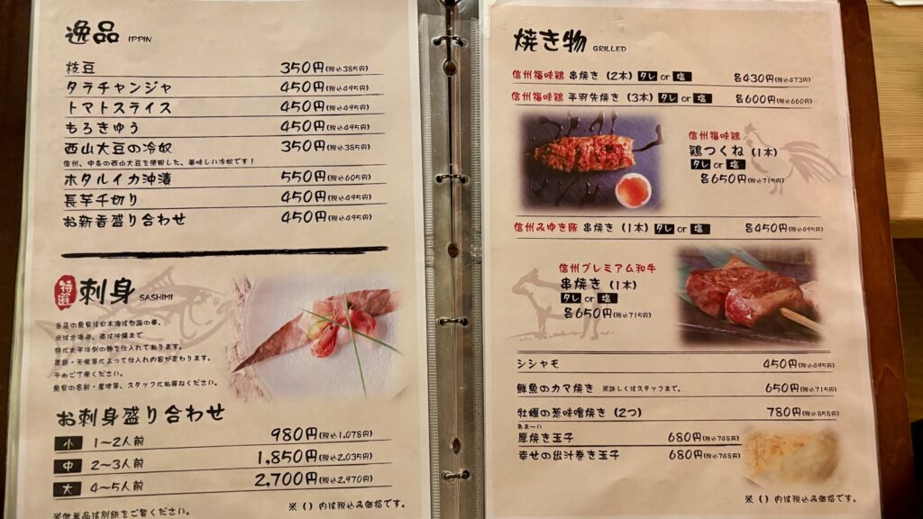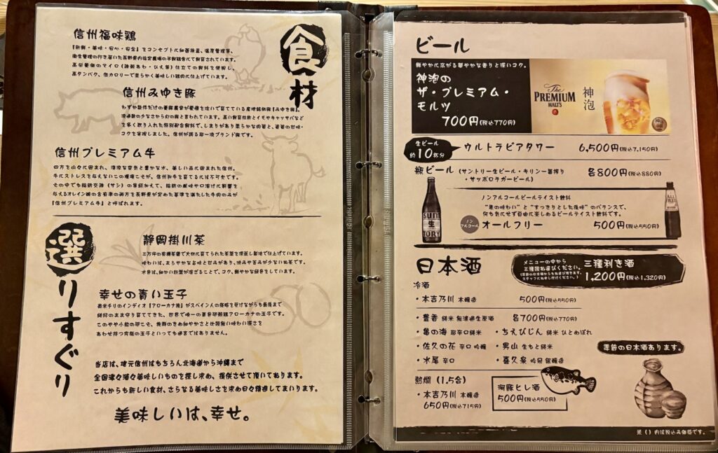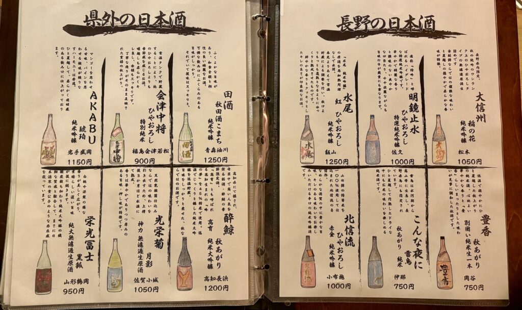 県内外の地酒がしっかり揃っていて、信州産の食材も多く、こだわりを強く感じました。