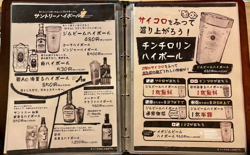 “チンチロリンハイボール” など遊び心のあるメニューもあり、