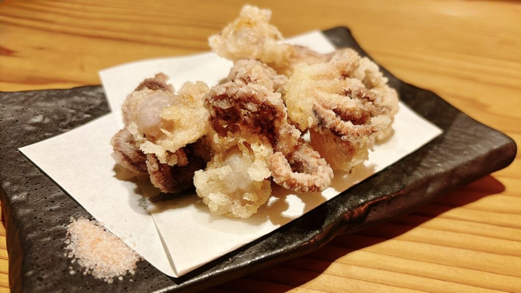 ビール派としては、初手に揚げ物が欲しい。というわけで イイダコの唐揚げ を注文。
