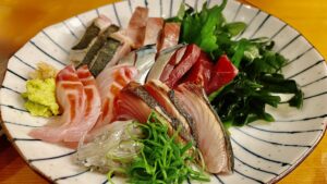 今回は“秋のおすすめ”においしい魚が多かったので、まずは お刺身盛り合わせ(中) を注文。