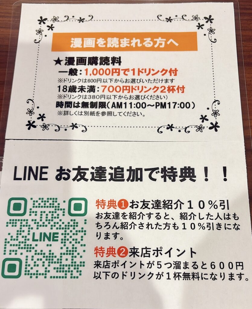ただし、夜の部では漫画の閲覧はできませんのでご注意を。
